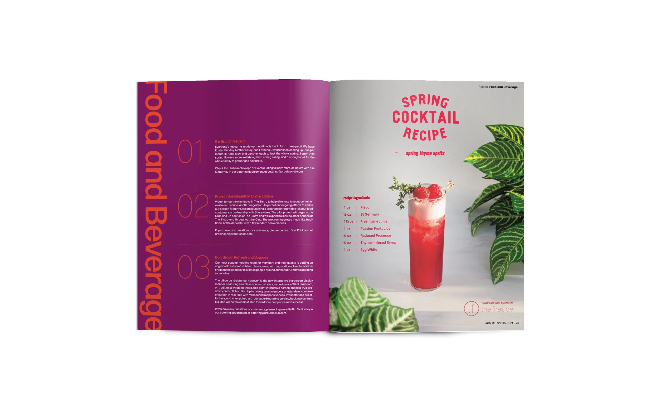 The Bark is a quarterly print and digital magazine produced exclusively for members of The Arbutus Club. As a key piece of the Club’s internal communications, the publication offers timely updates on Club initiatives, family programming, seasonal events, member achievements, and community engagement. Designed to foster connection and engagement across generations, The Bark reflects the vibrant spirit of the Club and its commitment to creating a welcoming, inclusive, and dynamic environment for all members.