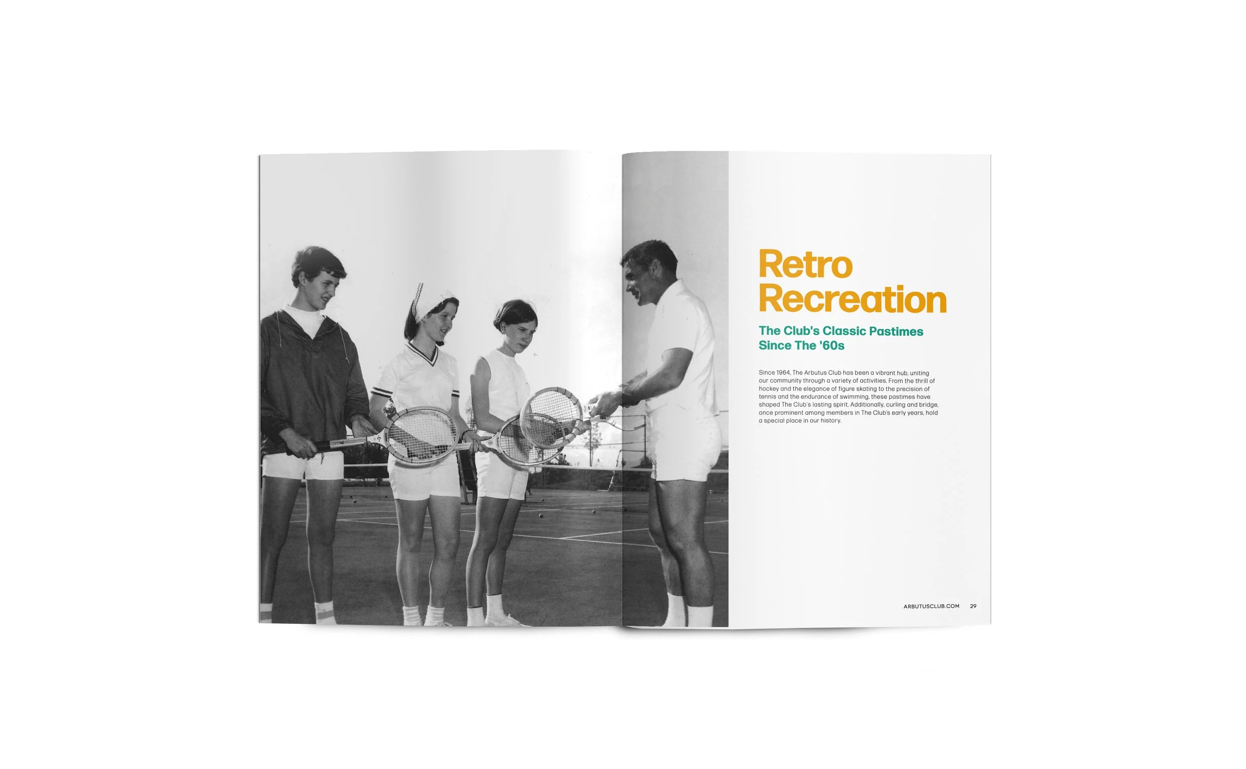 Archival research included old newsletters, event posters, and photo collections from the Club’s past, with select references from the City of Vancouver Archives for added context. The result was a visual and editorial tribute to the Arbutus Club’s evolution over the decades.